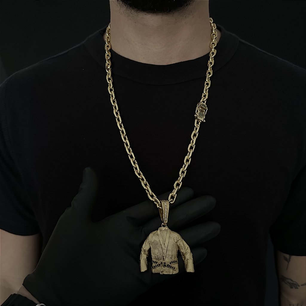 CORRENTE CADEADO (8mm - 56G 70 cm) + PINGENTE KIMONO FAIXA PRETA G - BANHO DE OURO 18k