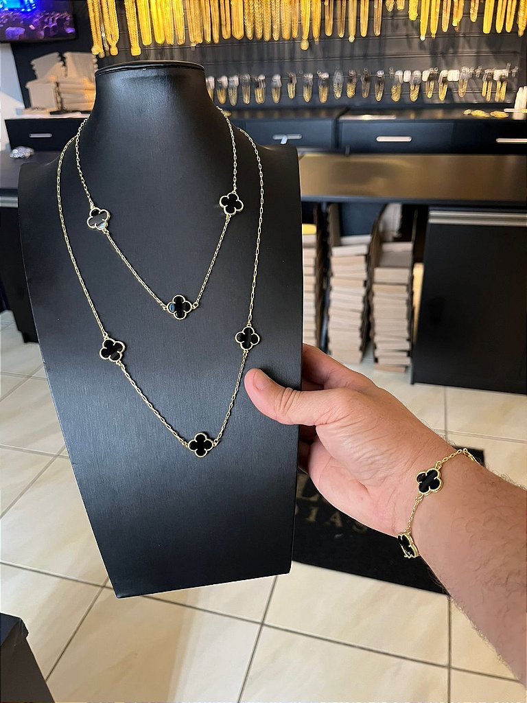 CORRENTE TREVO BLACK (2mm -50cm) + PULSEIRA TREVO BLACK FECHO GAVETA 2mm -20cm) - BANHADO A OURO 18K